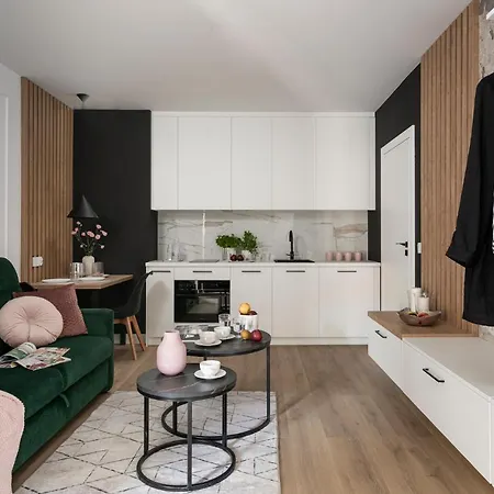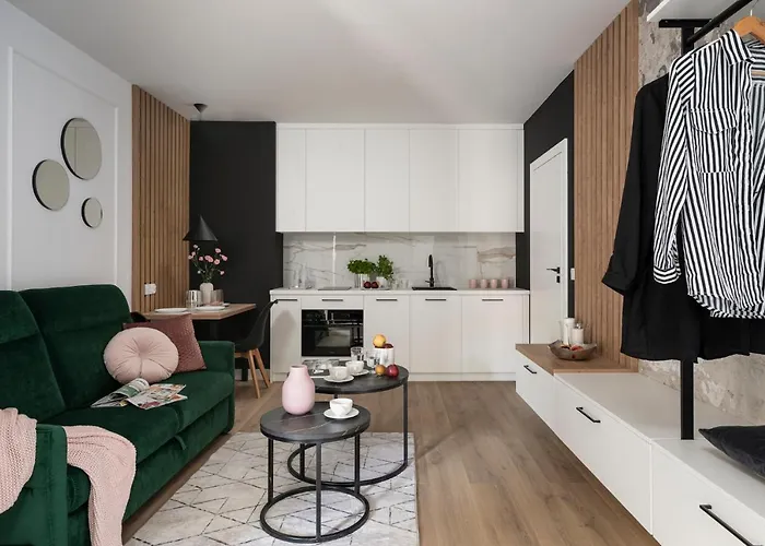 Este alojamiento está equipado con una pequeña cocina. Los restaurantes Laskotki Cookie Dough y el Tatin Bistro se encuentran a 14 minutos a pie. El aeropuerto Breslavia-Copérnico está a 25 minutos en coche, y la parada de autobús Dmowskiego, a poca distancia andando de la propiedad.
